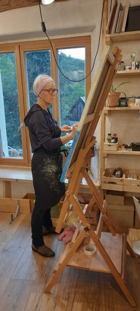 La peinture est arrivée beaucoup plus tard, en 2008. J’habitais alors dans les Cévennes et c’est la rencontre d’une artiste venue s’installer dans le village qui a été le déclencheur. J’ai été très émue par son travail et lorsqu’elle a ouvert un atelier, je me suis inscrite de suite. J’ai suivi son enseignement pendant environ 4 ans au cours desquels j’ai beaucoup appris. Comme dans tout apprentissage il faut savoir quitter sa zone de confort pour progresser. J’ai alors décidé de changer de professeur. Ainsi s’est enclencher mon chemin artistique. Différentes approches techniques et artistiques m’ont donc nourrie et inspirée au fil des années parmi lesquelles celles de W.Turner, J.Monet, Van Gogh, R.Delaunay, Tofoli, P.Cézanne, P.Klee, N.De Stael, J.Mitchell, Wao Zu Ki, et plus récemment une artiste contemporaine Perrine Rabouin qui m’a initiée à la peinture à l’huile et à la magie des couleurs.