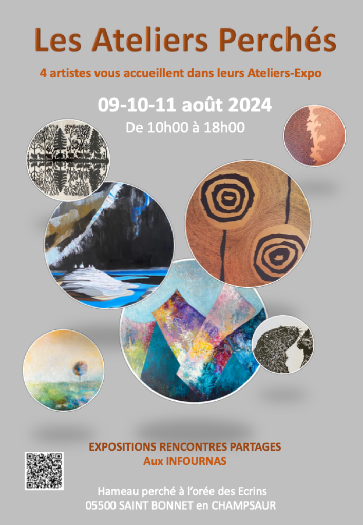 Du 11 au 17 août 2025 : ouverture au public de l’atelier Expo aux Infournas haut – Saint Bonnet en Champsaur, dans le cadre des ATELIERS PERCHES